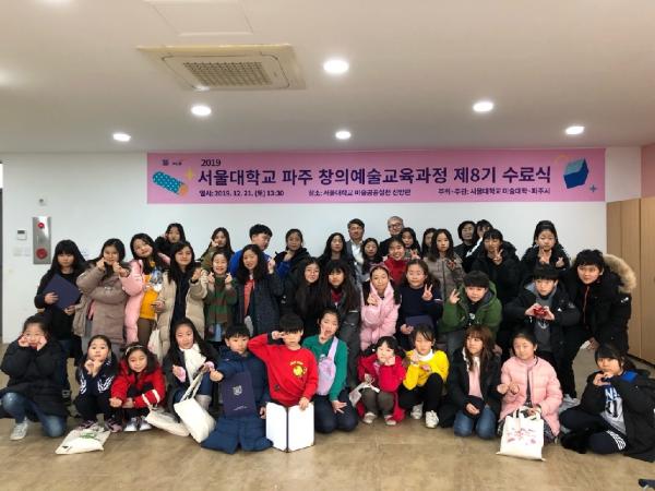 ‘서울대학교 파주 창의예술교육과정’은 파주시와 서울대학교 미술대학이 창의적 인재양성을 위한 상호 업무협약에서 출발한 통합예술교육과정으로 이번 제8기는 지난 8월 31일 입학식을 시작으로 12월 21일까지 교육에 참여한 42명의 학생들이 수료증을 받았다.