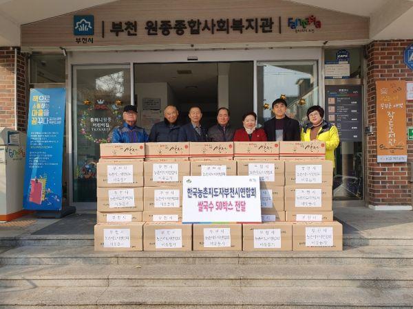 한국농촌지도자 부천시연합회는 지난 23일 연말을 맞이해 이웃 돕기를 위해 쌀국수 50박스를 원종종합사회복지관에 전달했다.