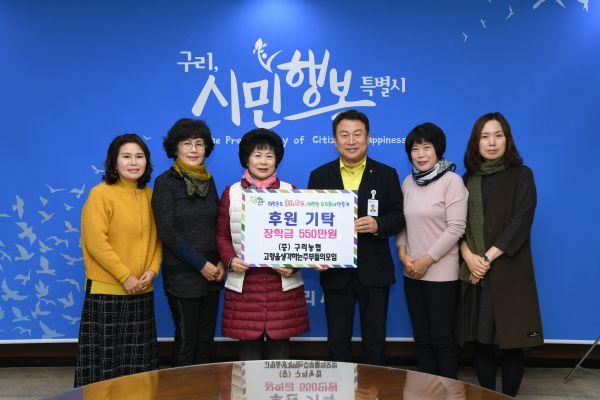 구리시에서는 지난 23일 구리농협의 여성 조직인 ‘고향을 생각하는 주부들의 모임’이 구리시청을 찾아 관내 저소득층 학생들을 위해 장학금 550만원을 전달했다.