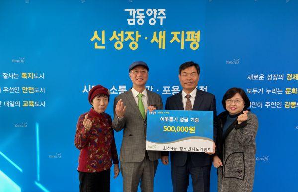 양주시 회천4동은 연말연시를 맞아 어려운 이웃을 돕기 위한 감동 기부가 계속돼 훈훈한 정이 넘치고 있다.