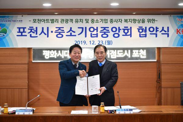 포천시와 중소기업중앙회는 포천아트밸리 관광객 유치 및 중소기업 일터 복지향상을 위해 업무협약을 맺었다.