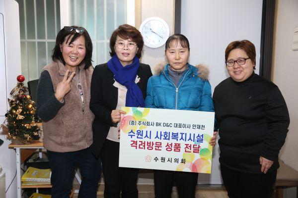 수원시의회 김미경 교통건설체육위원장이 24일 수원시 팔달구 화서동에 위치한 사회복지시설 ’서희 정신재활시설‘을 찾아 기부 성금과 쌀을 전달하며 시설 종사자·입소자들을 격려했다.
