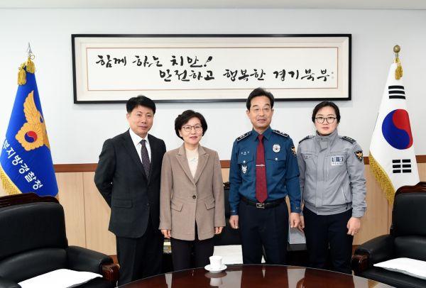 이화순 부지사는 이날 최해영 경기북부지방경찰청장 등 경찰 관계자들과 만나 경기도와 경기북부지방경찰청 간 협력강화 방안에 대해 논의를 갖은 후, 의무경찰들을 위해 위문금을 전달했다.