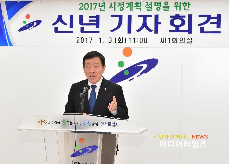[미디어타임즈= 신정식 기자] 제종길 안산시장은 3일 오전 11시 제1회의실에서 2017년 시정 계획 설명을 위한 정유(丁酉)년 새해 첫 기자회견을 개최했다.