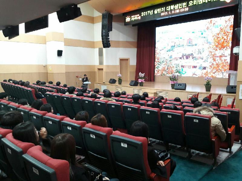 | 3일, 시청 대강당에서 대학생 인턴 오리엔테이션을 진행하고 있다. <사진=수원시청 제공> |