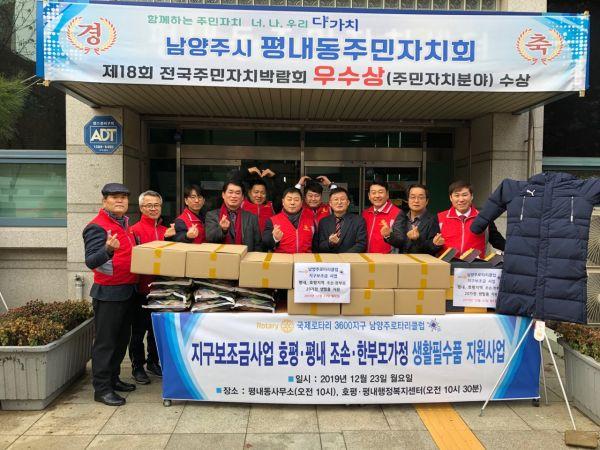 남양주로터리클럽은 지난 23일 연말연시를 맞이해 자라나는 소외계층 청소년의 따뜻한 연말연시를 위해 구스 롱패딩 및 백미, 떡구떡 등을 평내동주민센터에 기탁해 관내 한부모 및 조손가정 10가구에 전달했다.