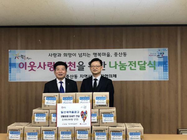 먼저 지난 18일 고양시기독교총연합회에서 사랑의 라면 40박스를 기탁해 중산동 관내 기초생활수급자·차상위계층 등 어려운 이웃 40가구에 전달했다.