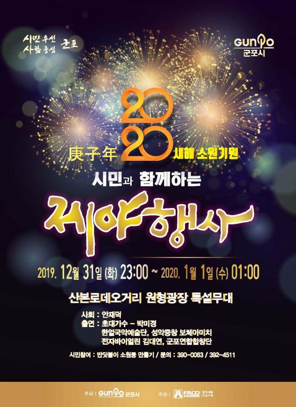 군포시는 오는 31일 밤 11시부터 지역 내 산본로데오거리 원형광장 특설무대에서 ‘2020 경자년 새해 소원 기원 제야행사’를 개최한다.