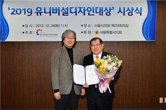 김희걸 서울시의원은 지난 24일 서울특별시의회 의원회관 제2대회의실에서 한국유니버설디자인협회가 주최한 ‘2019 유니버설디자인대상’을 수상했다.