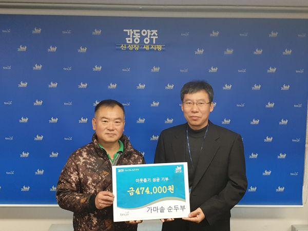 양주시 은현면 가마솥순두부 지난 24일 은현면행정복지센터를 방문해 소외계층을 위해 써달라며 성금 47만 4천원을 기부했다.