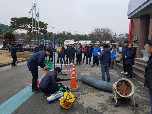 실무자를 대상으로 밀폐공간을 재현한 현장훈련에서는 수선에서부터 장비사용 방법, 단계별 밀폐공간 작업 매뉴얼과 사고발생시 안전조치까지 진행돼 유사시 대응능력을 향상 시켰다.
