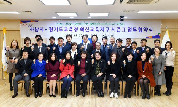 하남시는 경기도 교육청과 26일 시청 상황실에서 학교와 지역사회가 적극적으로 소통하고 협력하는 지역교육공동체 구축을 위한‘혁신교육지구 시즌Ⅱ’업무협약을 체결했다.