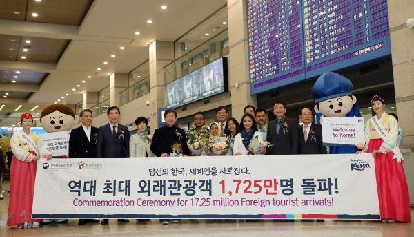 문화체육관광부와 한국관광공사는 26일 오전 9시, 인천국제공항에서 주요 관광업계 인사들과 함께 역대 최다 외래 관광객 1725만명 돌파를 기념하는 행사를 개최한다.