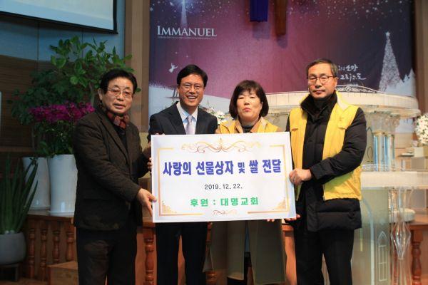대명교회가 후원한 물품은 생필품이 들어있는 선물박스 70개와 백미 70포로 연말을 맞이해 어려운 이웃에게 사랑을 나누고자 성도들이 마련한 것이다.