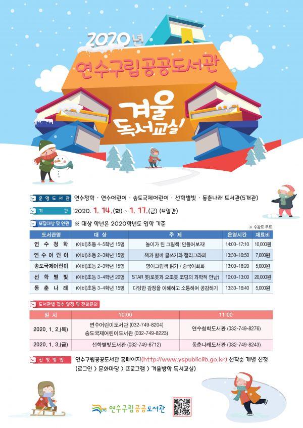 연수구립공공도서관 5개관은 오는 2020년 1월 14일부터 17일까지 ‘2020년 겨울방학 독서교실’을 운영한다.