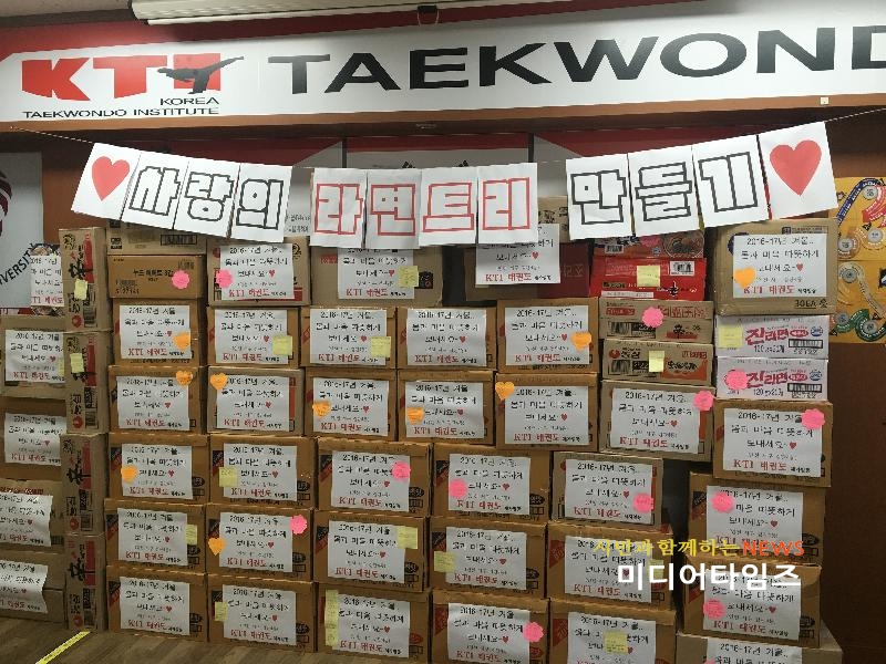 [미디어타임즈=문상수 기자] 서구 검단4동 주민센터(동장 이규천)와 KTI태권도학원(관장 이동익)은 지난 5일 오전 10시 30분에 주민센터에서 ‘사랑의 라면트리’ 전달식을 개최했다.이번 나눔은 작년에 이어 KTI태권도학원 수강중인 어린이 및 청소년 120여명이 자발적으로 열흘 동안 모은 라면 2,000개를 전달하였다.이번 활동을 통해 학생들은 관내 어려운 이웃들에게 따뜻한 마음을 전하고 사랑 나눔의 기쁨을 알게 되는 기회를 마련하였으며, 더불어 살아가는 세상을 배울 수 있게 되었다. 이규천 검단4동장은 “도움의 손길이 필요한 우리지역 어려운 이웃들에게 아이들의 따뜻한 마음을 잘 전달하겠다”는 감사의 말을 전하며, 기탁된 라면은 관내 저소득 가정 및 독거노인세대에 전달할 계획이라고 밝혔다.