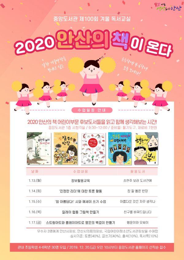 중앙도서관의 제100회 겨울 독서교실은 아이들에게 ‘2020 안산의 책이 온다’를 주제로 함께 책을 읽고 토론하는 등 다양한 방식의 논술활동과 창작활동의 기회를 제공할 예정이다.