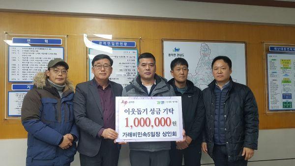 양주시 광적면은 지난 26일 광적면 가래비민속5일장 상인회에서 연말을 맞아 이웃돕기 성금 100만원을 기탁했다고 밝혔다.