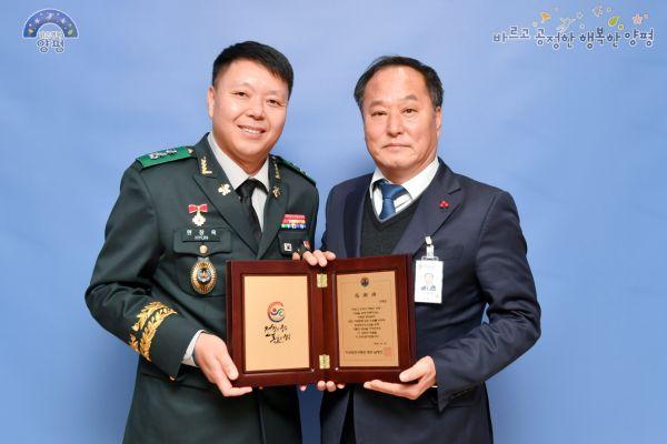 양평군은 대한민국 육군이 주관하는 ‘2019년 예비군육성지원 우수지자체’로 선정돼 지상작전사령관 감사패를 받았다.
