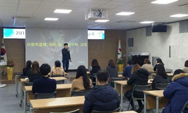 이번 교육은 예산 및 계약업무를 수행하는 공무원들에게 사회적경제를 이해하고 상생과 나눔의 삶의 방식을 실천하는 사회적경제기업에 대한 인식제고를 위해 마련됐다.