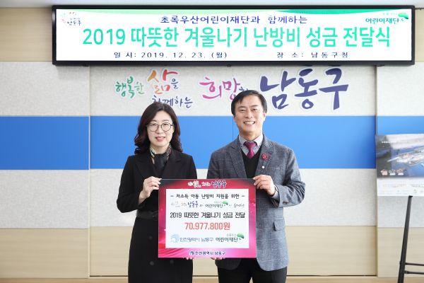 남동구와 초록우산 어린이재단 인천지역본부는 지난 23일‘2019 남동구 따뜻한 겨울나기 캠페인’ 모금액 전달식을 가졌다.