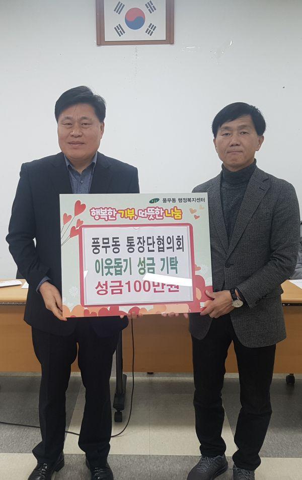 풍무동 통장단협의회는 지난 26일 풍무동행정복지센터에 이웃돕기 성금 100만원을 기탁했다.