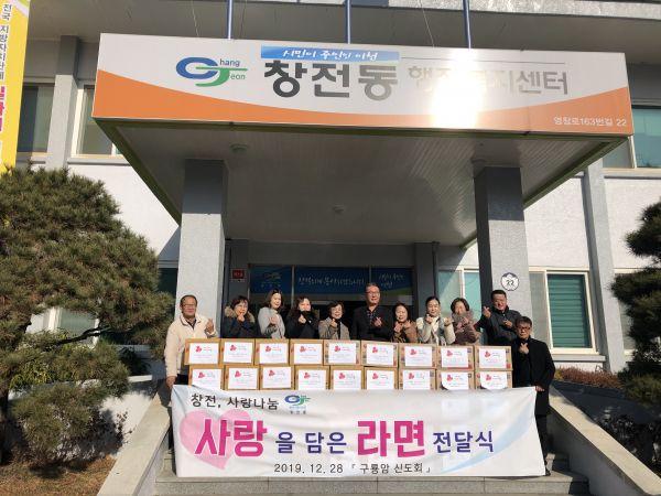 구룡암신도회에서 지난 28일 창전동행정복지센터를 방문해 라면 70박스를 전달했다.