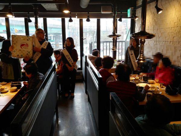 식사를 제공한 관내 식당 ‘농부애갈비’ 공동대표 박인준 대표와 오동근 대표는 지난 8월에도 관내 독거 어르신 30명에게 점심식사를 대접한 바 있으며 이번에도 갈비탕을 마련해 연말에 따뜻한 이웃사랑의 정을 나눴다.
