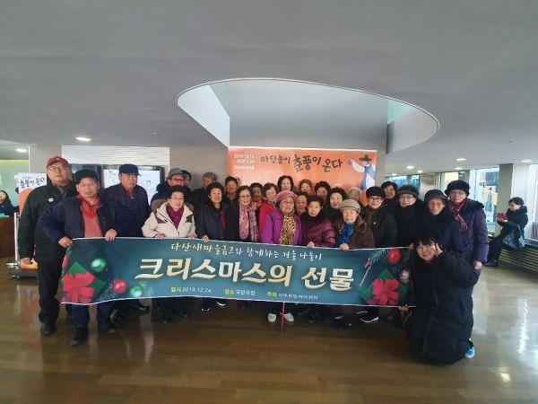 이웃과 즐거운 기념일을 보내고자 하는 어르신 30명이 참여해 다함께 서울 장충동 소재 국립극장에서 마당놀이 ‘춘풍이 온다’를 관람했으며 관람 후에는 크리스마스 선물과 카드를 주고받으며 서로 송년인사와 신년 덕담을 나눴다.