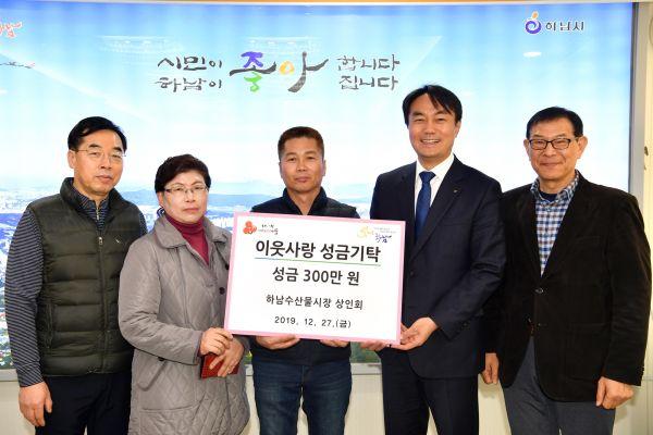 하남수산물시장 상인회는 지난 27일 하남시에‘하남 사랑愛나눔’성금 300만원을 전달하는 기탁식을 개최했다.
