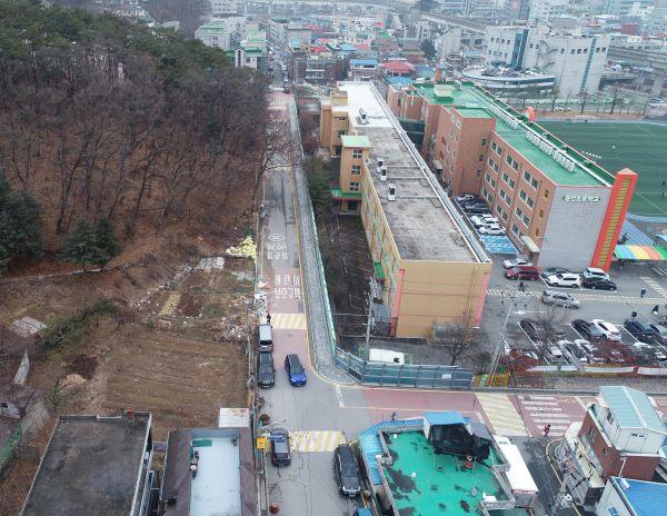 이에 시는 어린이 통학 안전을 위한 사업이라며 계속해서 협조를 요청했고 부지 관리기관인 교육지원청이 수용 조건으로 공유부지를 지분율에 따라 단독번지로 분할하는 방안을 제시하자 이를 받아들여 사업을 진행했다.