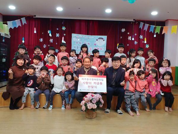 인천 미추홀구 숭의4동 행정복지센터는 지난 27일 미추홀구청어린이집 원생들이 저금통에 모은 용돈을 숭의4동지역사회보장협의체에 전달하는 ‘우리 함께 사랑의 마음을 전해요’ 행사를 가졌다고 30일 밝혔다.