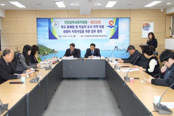 인천시 옹진군은 30일 인천시남부교육지원청 3층 영상회의실에서 남부교육지원청과 ‘학교 통폐합 및 미설치 도서 지역 학생 생활비 지원사업을 위한 업무협약’을 체결했다.