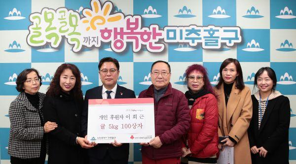 인천 미추홀구는 지난 30일 도화동 주민 이희근 씨가 개인후원자 자격으로 귤 5kg 상자 100개를 구청에 기탁했다고 31일 밝혔다.