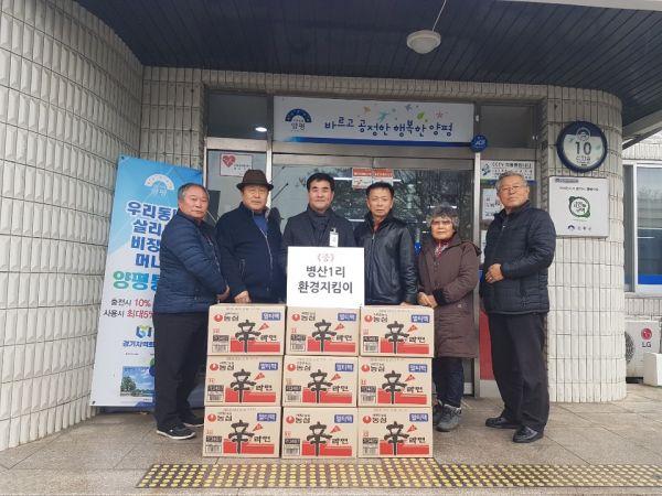 이번 기부물품을 지원한 병산1리 환경지킴이는 가정에서 발생하는 생활폐기물의 분리·배출, 불법투기, 불법소각 등을 사전에 근절해 맑고 깨끗한 양평 만들기 조성에 앞장서고 있다.