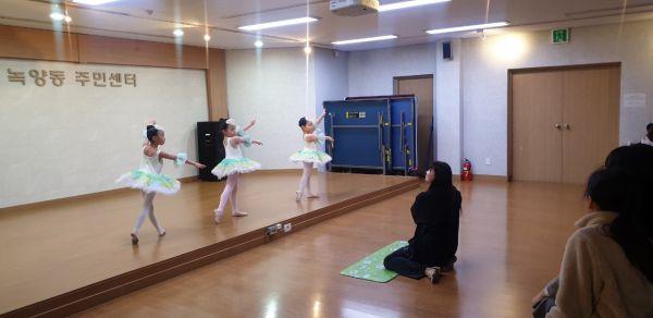 의정부시 녹양동 주민센터는 지난 30일 3층 대강당에서 6~7세 어린이발레 수강생들이 귀엽고 앙증맞은 실력을 뽐내는 졸업발표회를 개최했다.