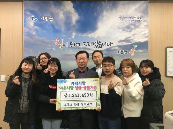 가평군 조종초등학교 학생 및 학부모들이 불우이웃돕기 기금 마련을 위한 바자회를 열어 마련한 수익금을 최근 조종면행정복지센터에 기부했다.