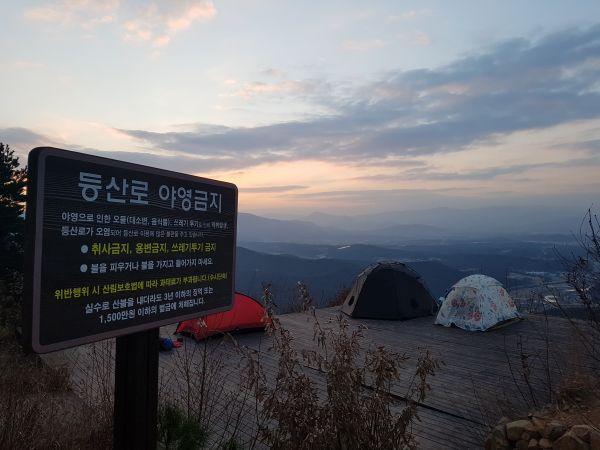 지정된 야영구역이 아닌 등산로의 야영은 등산로 오염뿐만 아니라, 화기소지 및 사용으로 산불발생 위험이 있는 만큼 지정된 야영구역 외 절대 야영을 하지 말 것을 당부했다.