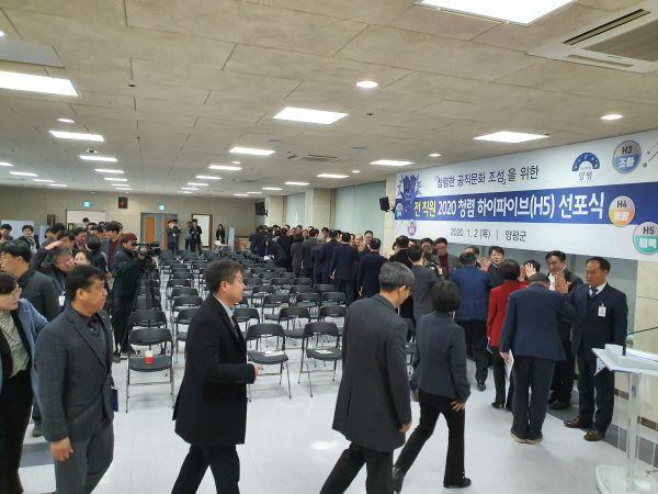 정동균 양평군수는 2일 오전 9시 양평군청 별관4층 대회의실에서 양평군 전 직원을 대상으로 ‘2020 청렴 하이파이브’ 선포식을 가졌다.