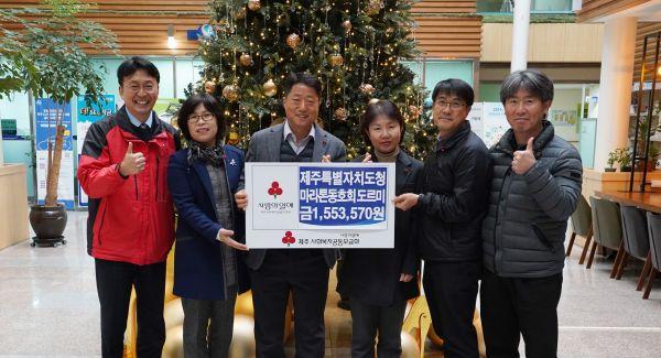 제주특별자치도청 마라톤 동호회 도르미는 지난해 12월 31일 제주사회복지공동모금회에 이웃사랑 성금 1,553,570원을 기탁했다고 밝혔다.