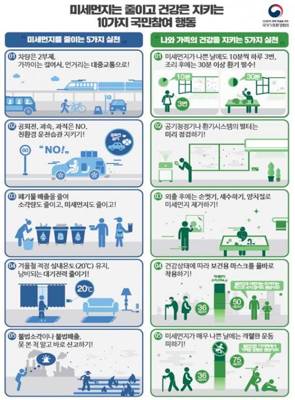 수도권에 위치한 행정·공공기관 운영 사업장에서는 운영시간을 단축하거나 조정하고 건설공사장에서는 공사시간 변경·조정, 방진덮개 덮기 등 날림먼지 억제조치를 실시한다.
