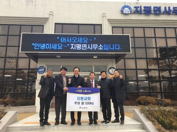 지평교회는 지난 2일 지평면에 복지사각지대에 있는 주민들을 위해 쌀 500kg을 기탁했다.