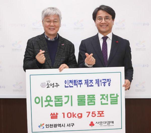 인천탁주는 다가오는 설을 맞아 쌀 75포를 지난 2일 인천 서구에 전달했다.