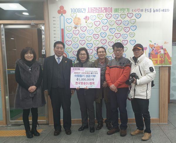 한국방송DJ협회는 지난해 12월 31일 신곡2동 주민센터를 방문해 지역의 도움이 필요한 취약가구를 돕는 일에 사용해 달라며 일일찻집을 통해 모금한 성금 100만원을 기탁했다.