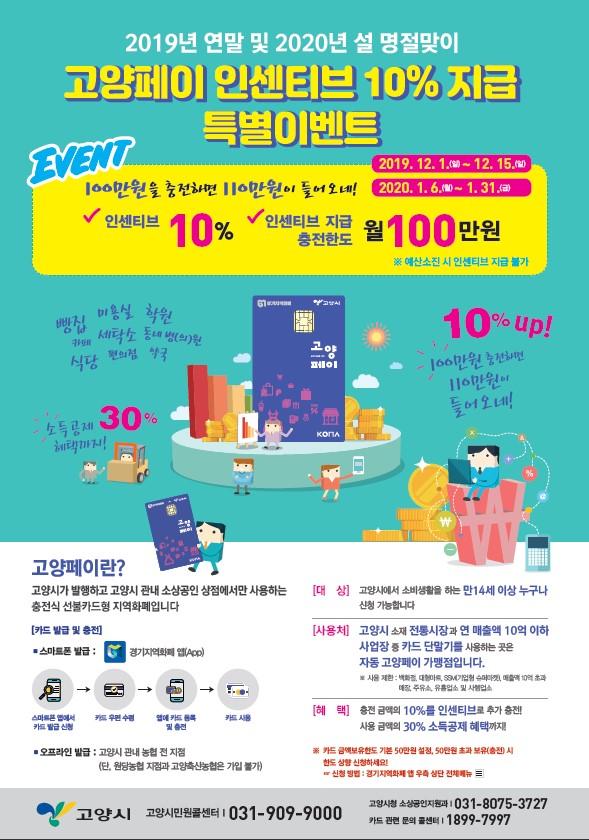 고양시는 2020년 설 명절을 맞아 ‘고양페이’의 10% 인센티브를 지급하는 특별이벤트를 실시한다.