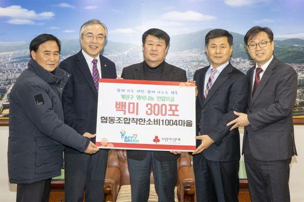 협동조합착한소비1004마을은 지난해 12월 31일 ‘희망2020 따뜻한사랑나누기 캠페인’에 동참해 백미 300포를 계양구에 기탁했다.