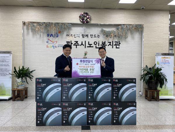파주시노인복지관과 LG전자 베스트샵 파주점은 지난 12월 31일 파주시 어르신을 위한 ‘1%의 나눔, 행복한 약속’ 전자제품 후원전달식을 진행했다.