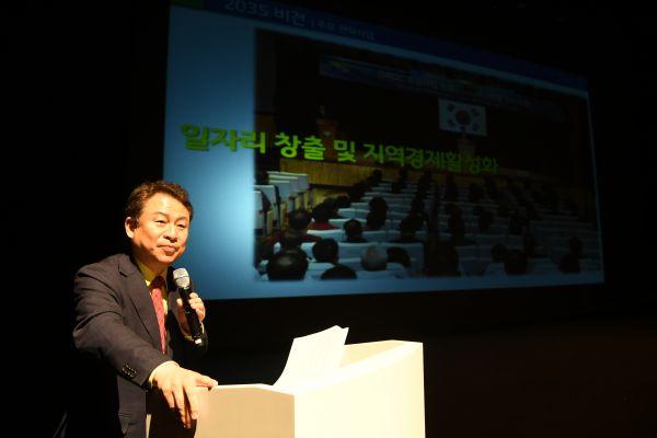 안승남 시장은 먼저 큰 절로 시민들에게 신년인사를 올린 뒤 2035에 대한 보고말씀을 통해“취임 이후 행정의 근본을‘시민행복’에 두고 첫 출근을 한 것이 엊그제 같은데, 어느덧 1년 6개월이라는 시간이 흘렀고 다가오는 4차 산업 혁명시대에 건강을 찾는 곳, 어르신이 행복한 곳, 역사가 흐르는 곳, 배움이 신나는 곳, 희망을 시작하는 곳, 이웃을 만드는 곳에 대한 마스터플랜인 구리비전 2035 장기발전 계획을 성심을 다해 준비했다”고 밝혔다.
