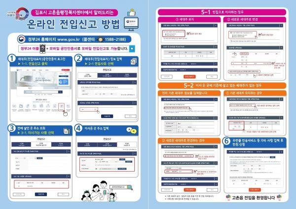 고촌읍 행정복지센터에서는 민원인을 위한 ‘온라인 제증명발급방법 안내문’과 ‘온라인 전입신고 안내문’을 제작해 배부하고 있다.