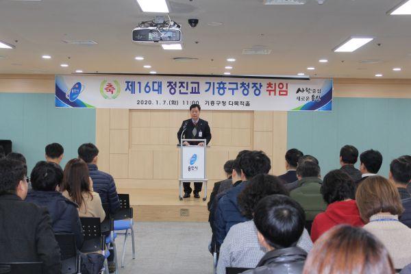 용인시 기흥구는 7일 구청 다목적홀에서 직원 150여명이 참석한 가운데 제16대 정진교 구청장 취임식을 열었다.